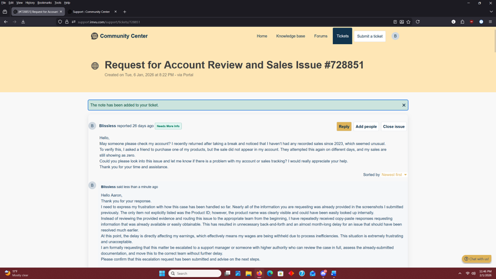 I opened a support ticket nearly a month ago regarding a purchase issue that affected my earnings. I submitted screenshots on day one that clearly showed: